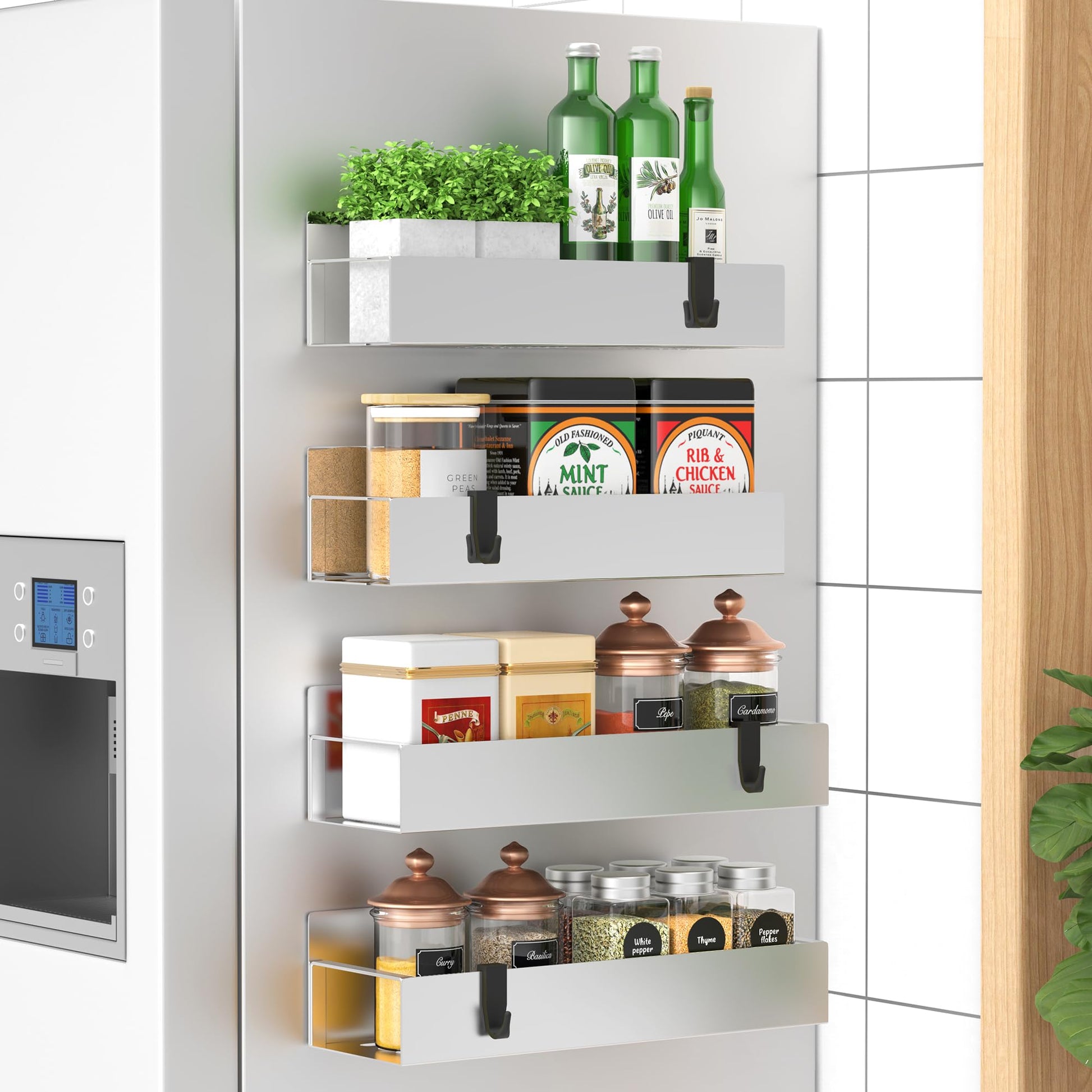 Metal 4 Pack Magnetic Spice Storage Rack Organizer for Refrigerator and Oven, Black Fridge Organizers and Storage