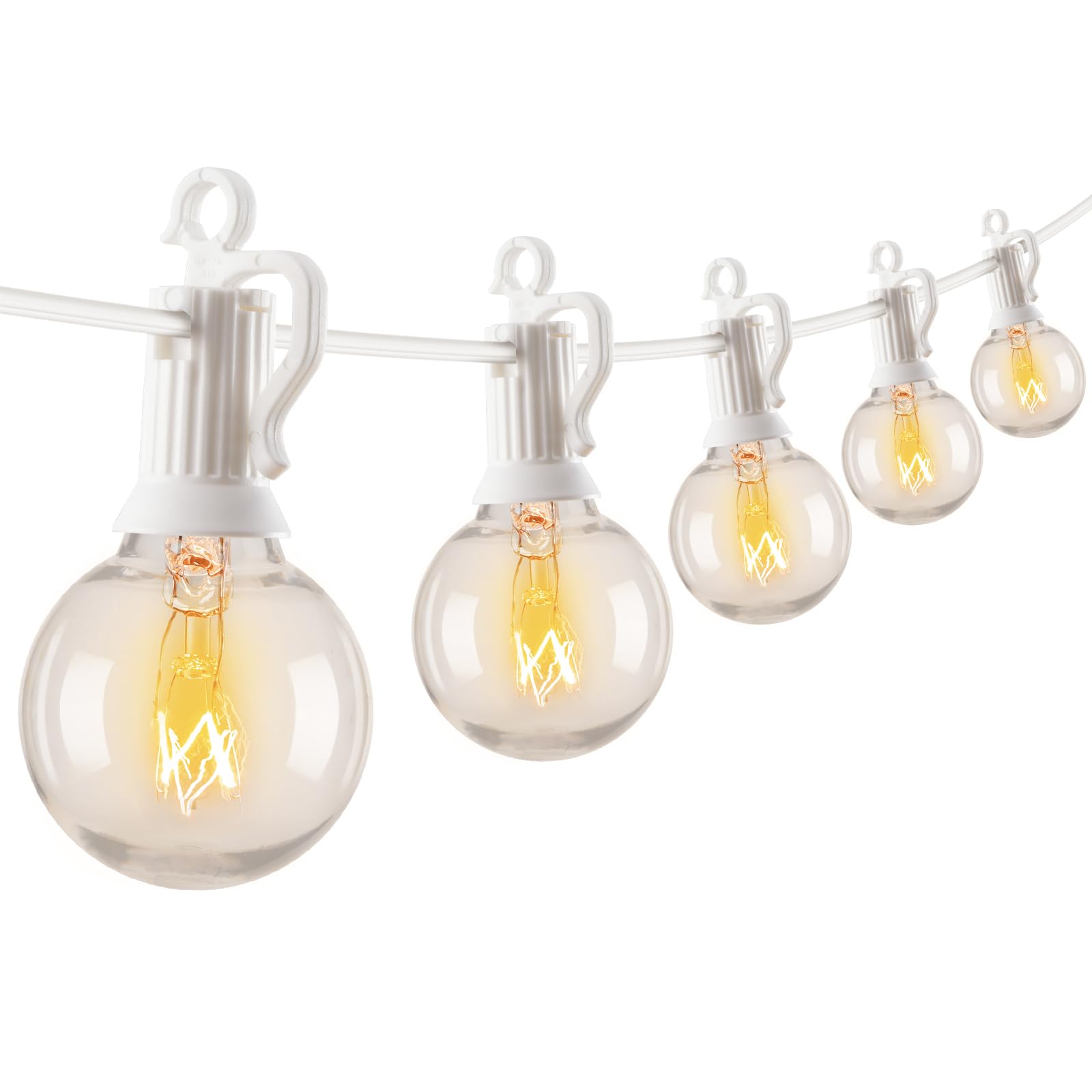 - 【Dimmable Compatible & Energy Saving】G40 LED outside string light come with 12 plastic LED bulbs and 1 spare bulb. 1.5 inch light bulbs have E12/C7 candelabra socket base, 1W per bulb, warm white dimmable string light help you to save more electricity bid(Dimmer Not Included)